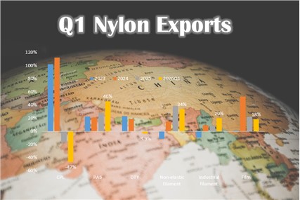In Q1 2026, exports in nylon 6 industry all posted a year-on-year increase, except for CPL and DTY. Nylon 6 still had the largest export volume and strongest growth, with upbeat growth prospects ahead. Exports of industrial filament and film stayed genera